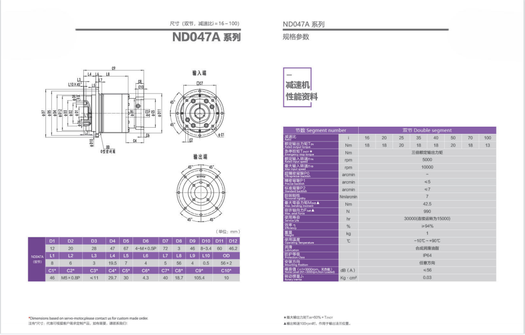 ND047A系列超精密背隙行星減速機(jī)系列(P0): ND047A系列精密背隙行星減速器系列(P1): ND047A系列標(biāo)準(zhǔn)背隙行星減速機(jī)系列(P2):