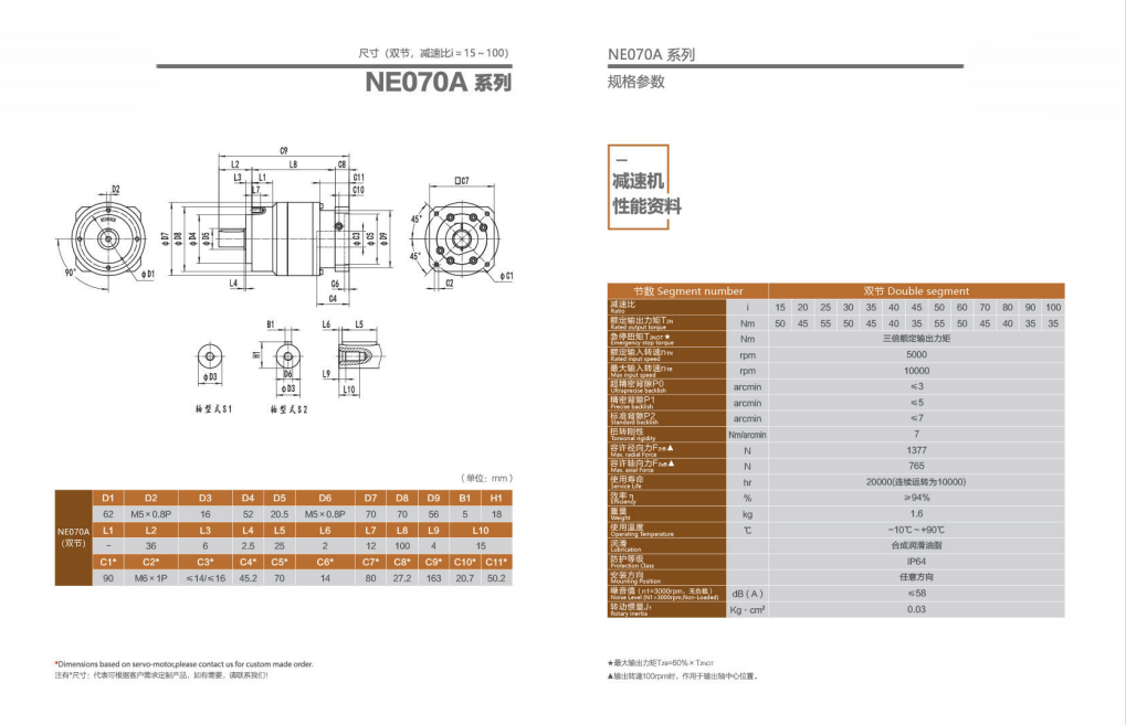 NE070A系列超精密背隙行星減速機系列(P0): NE070A系列精密背隙行星減速器系列(P1): NE070A系列標準背隙行星減速機系列(P2):