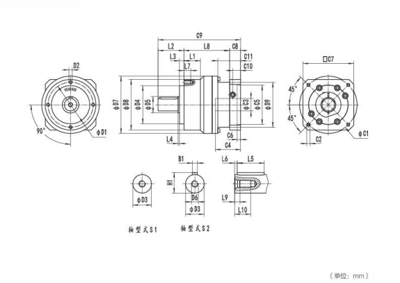 NE155系列精密行星減速器型號(hào)尺寸與圖紙