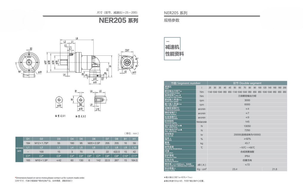 NER205系列超精密背隙行星減速機(jī)系列(P0): NER205系列精密背隙行星減速器系列(P1): NER205系列標(biāo)準(zhǔn)背隙行星減速機(jī)系列(P2):