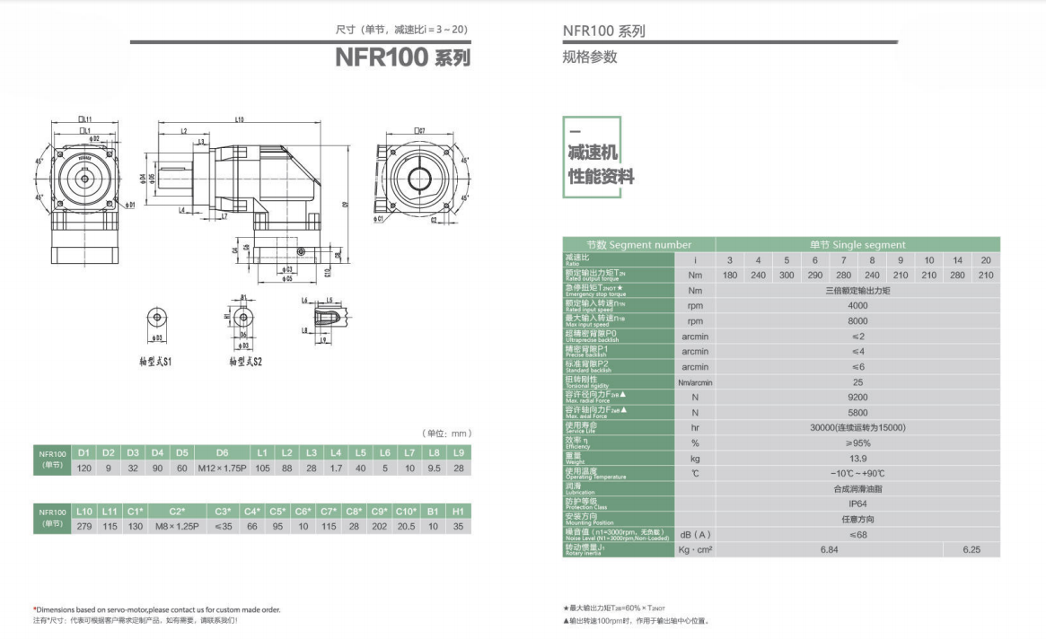 NFR100系列精密行星減速器型號(hào)尺寸與圖紙