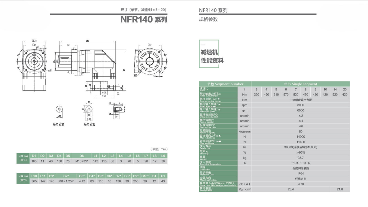 NFR140系列超精密背隙行星減速機系列(P0): NFR140系列精密背隙行星減速器系列(P1): NFR140系列標準背隙行星減速機系列(P2):