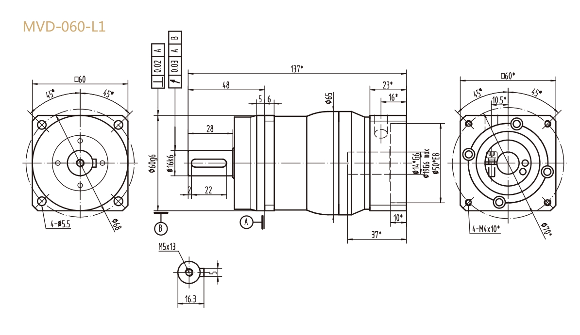MVD-060-L1系列精密行星減速器型號(hào)尺寸與圖紙