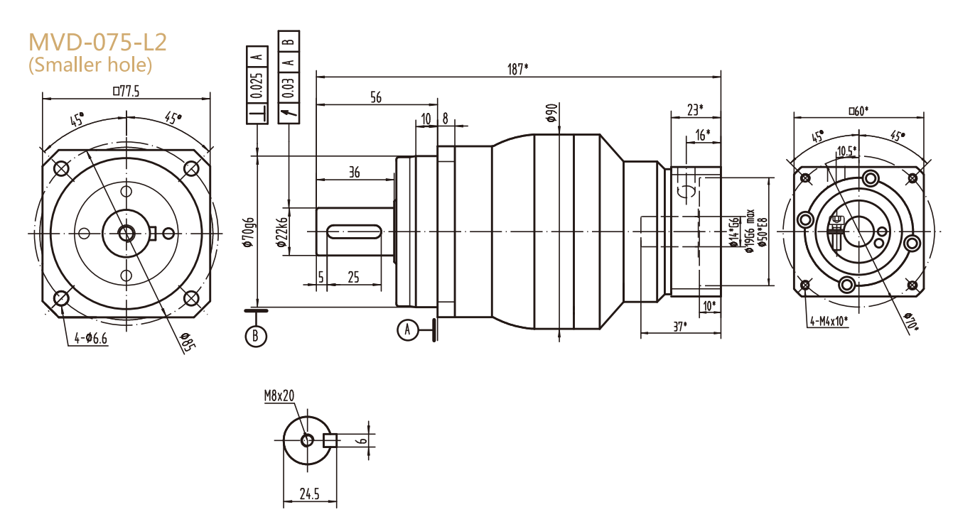 MVD-075-L2系列精密行星減速器型號尺寸與圖紙