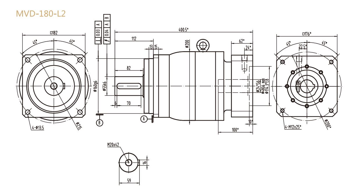 MVD-180-L2系列精密行星減速器型號(hào)尺寸與圖紙
