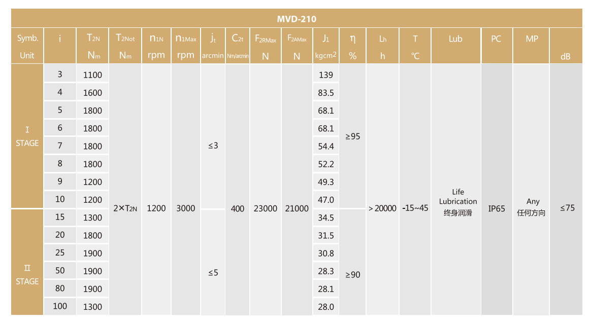 MVD-210-L2系列超精密背隙行星減速機(jī)系列(P0): MVD-210-L2系列精密背隙行星減速器系列(P1): MVD-210-L2系列標(biāo)準(zhǔn)背隙行星減速機(jī)系列(P2):