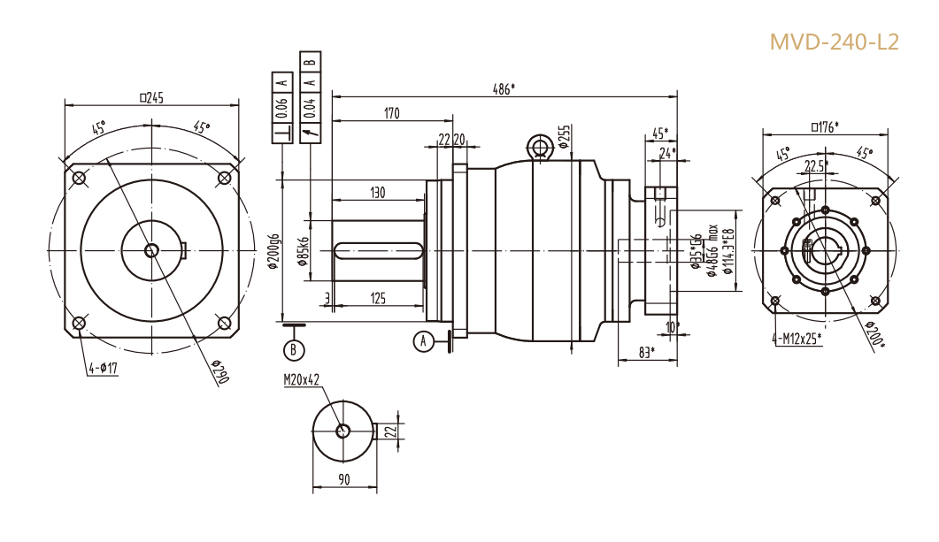 MVD-210-L2系列精密行星減速器型號尺寸與圖紙