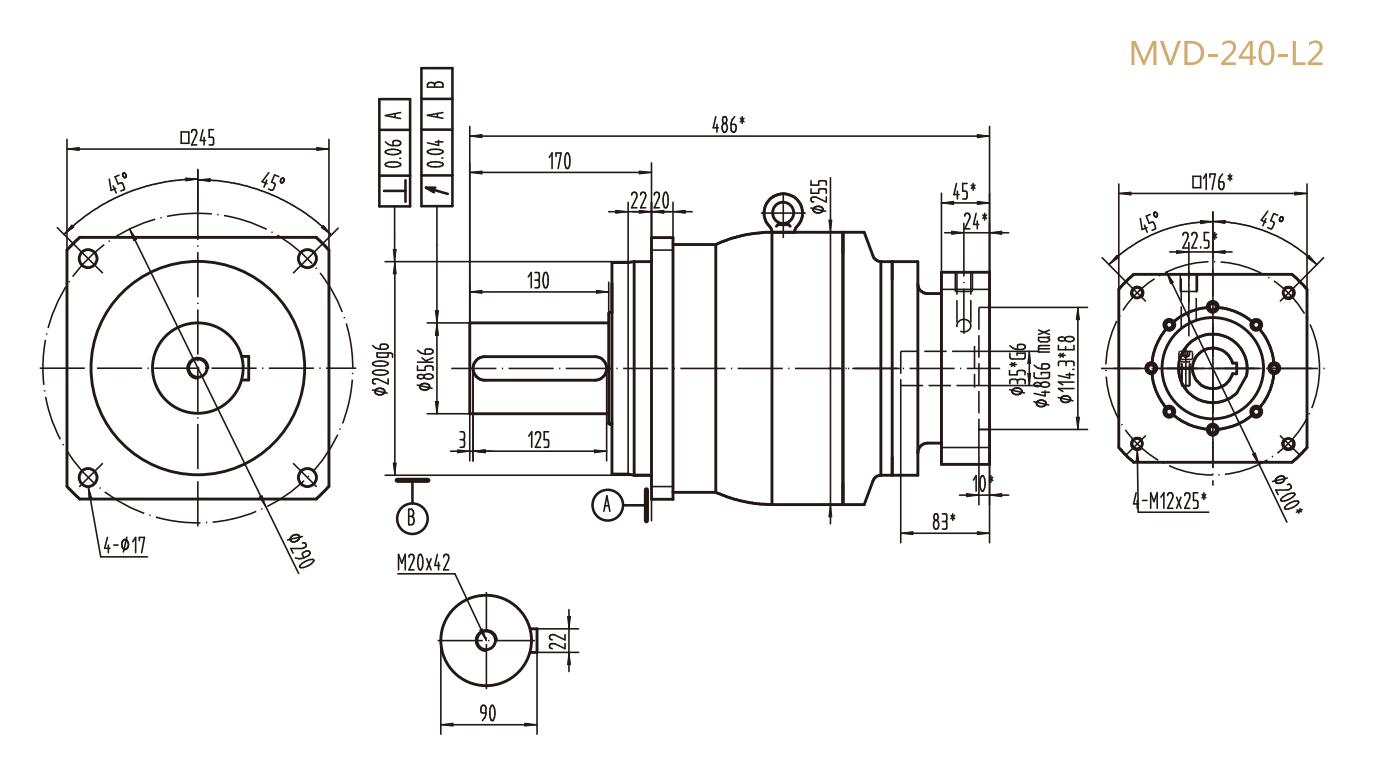 MVD-240-L2系列精密行星減速器型號尺寸與圖紙