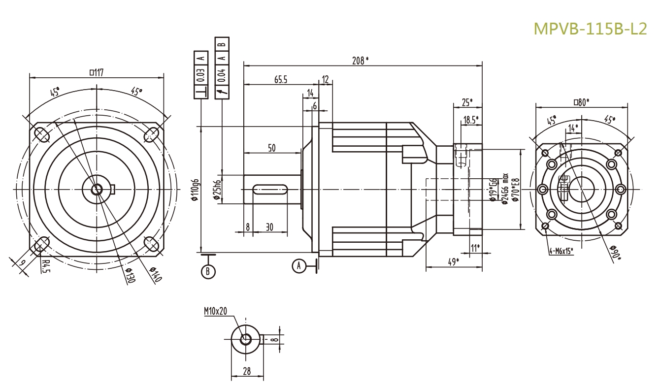 MPVB-115B-L2系列精密行星減速器型號(hào)尺寸與圖紙