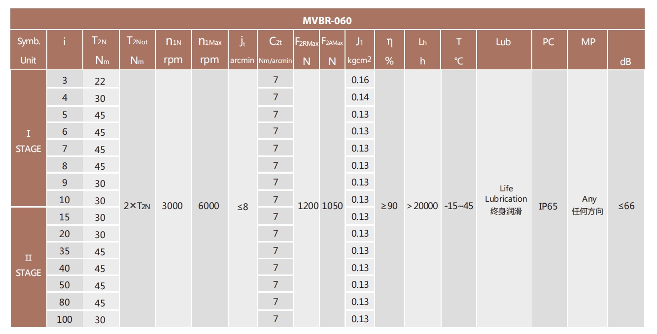 MVBR-060-L1系列超精密背隙行星減速機系列(P0): MVBR-060-L1系列精密背隙行星減速器系列(P1): MVBR-060-L1系列標準背隙行星減速機系列(P2):