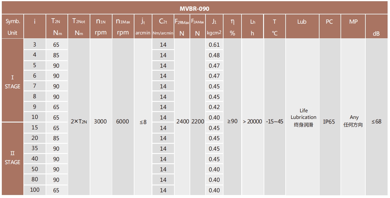 MVBR-090-L2系列超精密背隙行星減速機系列(P0): MVBR-090-L2系列精密背隙行星減速器系列(P1): MVBR-090-L2系列標準背隙行星減速機系列(P2):