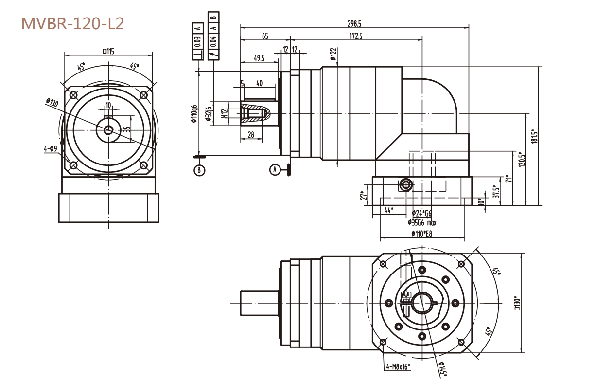 MVBR-120-L2系列精密行星減速器型號(hào)尺寸與圖紙
