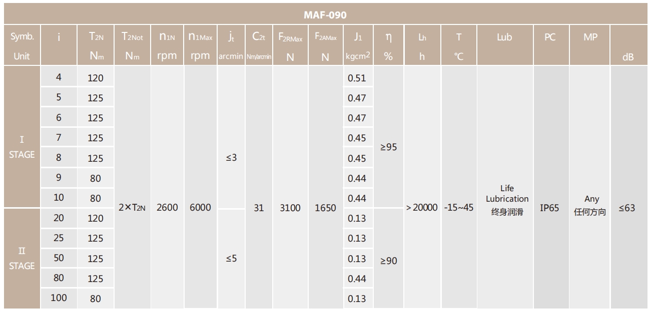 MAF-090-L1系列超精密背隙行星減速機系列(P0): MAF-090-L1系列精密背隙行星減速器系列(P1): MAF-090-L1系列標準背隙行星減速機系列(P2):