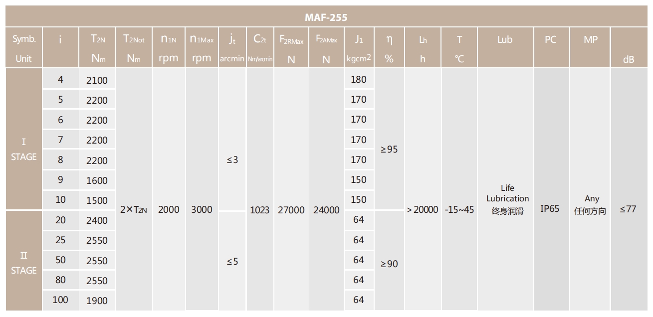 MAF-255-L1系列超精密背隙行星減速機(jī)系列(P0): MAF-255-L1系列精密背隙行星減速器系列(P1): MAF-255-L1系列標(biāo)準(zhǔn)背隙行星減速機(jī)系列(P2):
