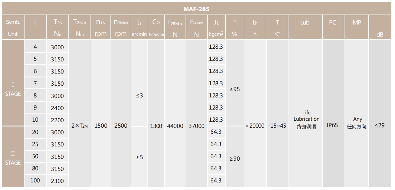 MAF-285-L2系列超精密背隙行星減速機(jī)系列(P0): MAF-285-L2系列精密背隙行星減速器系列(P1): MAF-285-L2系列標(biāo)準(zhǔn)背隙行星減速機(jī)系列(P2):